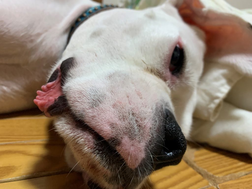 先日、我が家の愛犬ヴァレリが興奮しすぎて、玄関でコケ、顎裏を擦りむきました(-_-;)